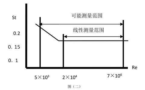 由此可見,通過測(cè)量卡門渦街分離頻率便可算出瞬時(shí)流量。其中,斯特羅哈爾數(shù)(St)是無因次未知數(shù),